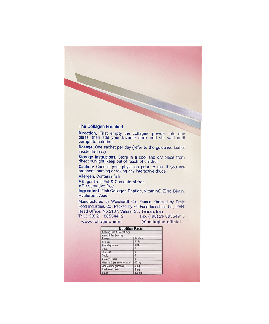 - حاوی 5gr پودر خالص کلاژن ماهی